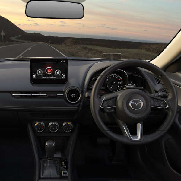 Interior Mazda CX-3 dirancang dengan material berkualitas tinggi dan perhatian terhadap detail. Tata letak dashboard berorientasi pada pengemudi, menciptakan ergonomi yang optimal dan kemudahan pengoperasian. Sistem infotainment yang intuitif serta peredaman kabin yang baik menghadirkan suasana berkendara yang nyaman dan tenang.
