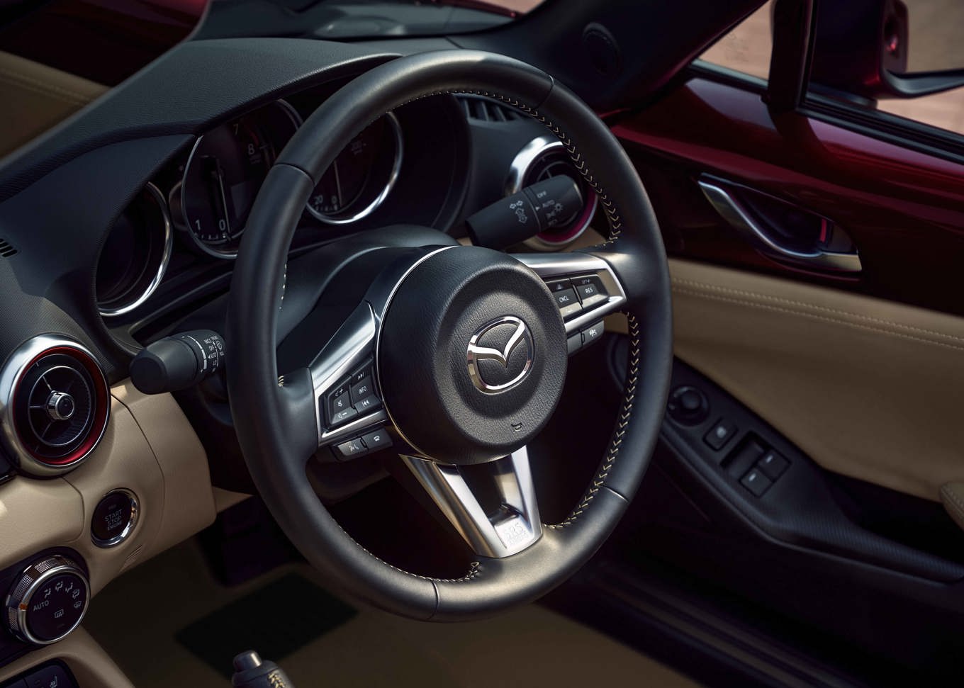Kabin Mazda MX-5 dirancang dengan fokus penuh pada pengemudi. Posisi duduk rendah, tata letak kontrol yang ergonomis, serta material berkualitas tinggi menciptakan koneksi langsung antara pengemudi dan kendaraan. Kesederhanaan desain interior mencerminkan filosofi fungsional, memastikan setiap elemen memiliki tujuan yang jelas dalam mendukung pengalaman berkendara.